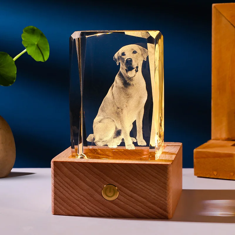 Golden Retriever Luminous 3D Engraved Crystal Cube Night Light