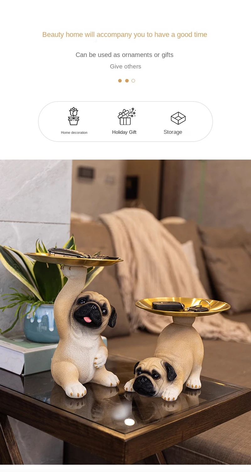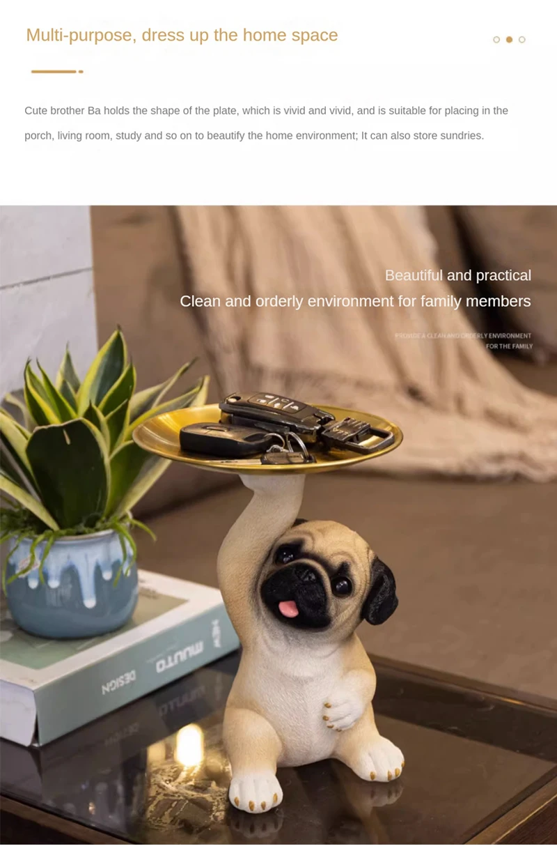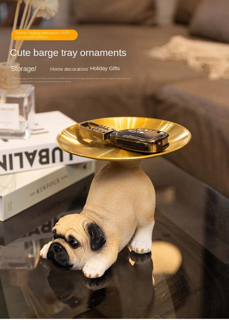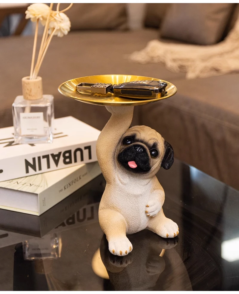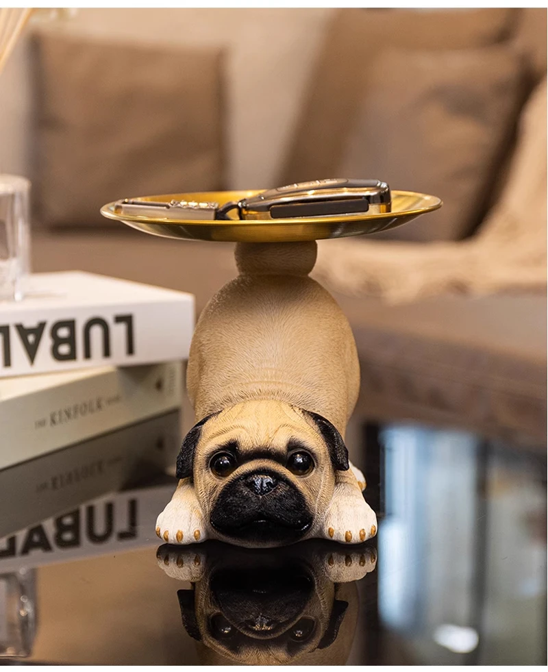 TingKe American Cute Pug Dog Tray Ornament Home Decoration Animal Resin Ornament Living Room Desktop Decoration Storage Tray