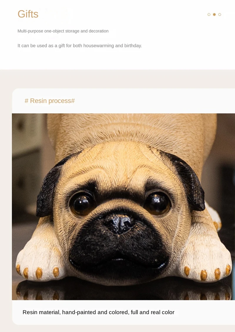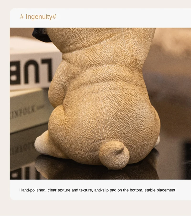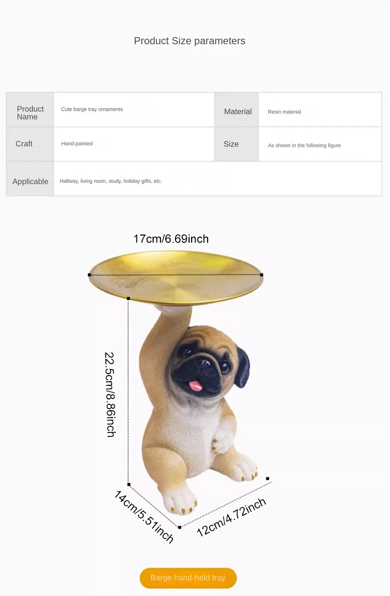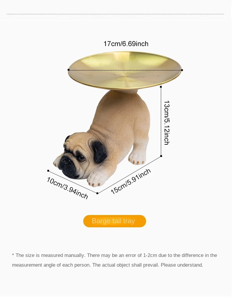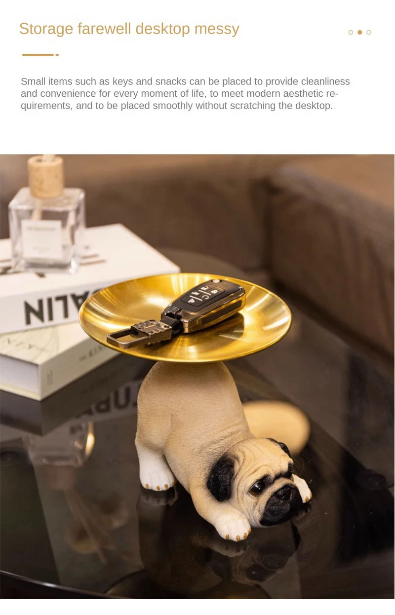 TingKe American Cute Pug Dog Tray Ornament Home Decoration Animal Resin Ornament Living Room Desktop Decoration Storage Tray